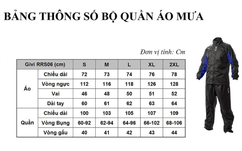 Bảng size áo mưa bảo hộ phản quang (Tham khảo)