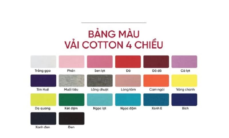 Sau đây là bảng màu cho bạn lựa chọn may đồng phục bảo hộ xây dựng, đa dạng dành cho các công nhân hiện nay. Tương ứng với mỗi loại vải may đồng phục sẽ có những màu sắc khác nhau: