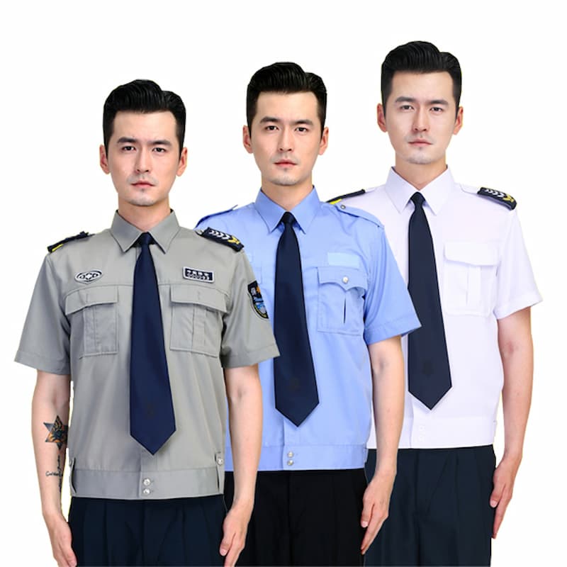 Để nhân viên bảo vệ hoạt động dễ dàng trong mùa hè, thiết kế đồng phục thường bao gồm sơ mi ngắn tay hoặc dài tay, cổ bẻ. Và áo có màu xanh dương hoặc màu trắng nhẹ nhàng mang đến cảm giác mát mẻ dễ chịu.